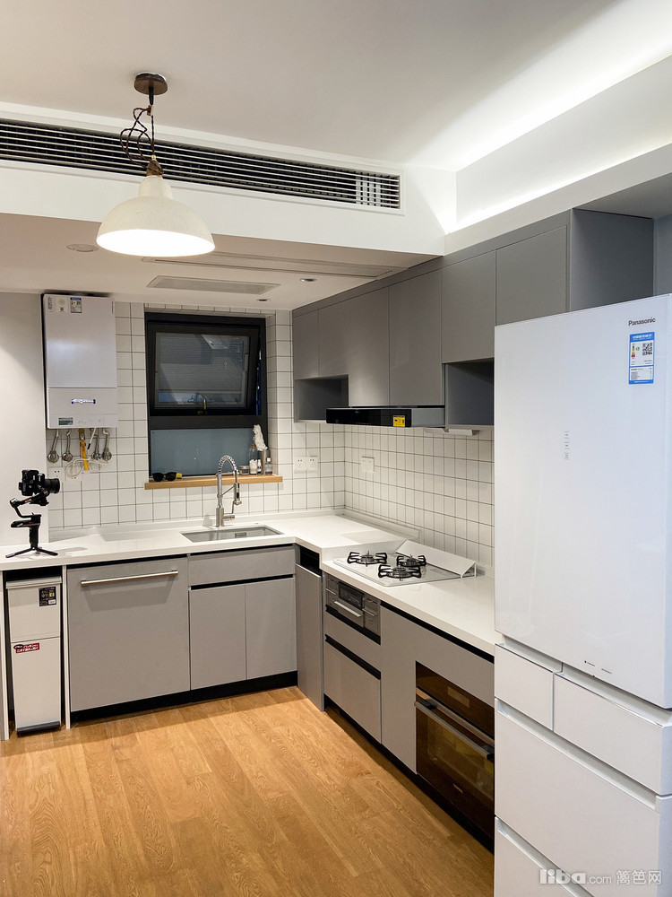 厨房墙面采用小白砖,橱柜是百乐满,颜值超高
