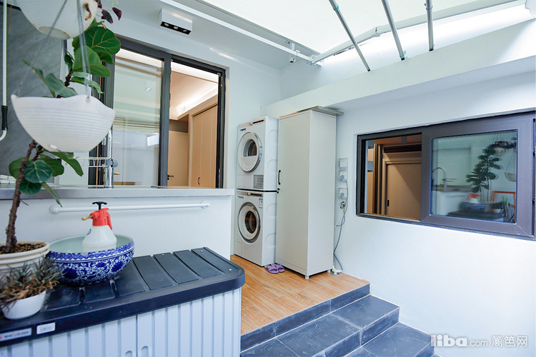 露台一分为二,一半作为多功能室,另一半作为小庭院,在这个小庭院可以洗衣晾衣,在墙边还设计了一圈花池,等以后种上花一定非常美!