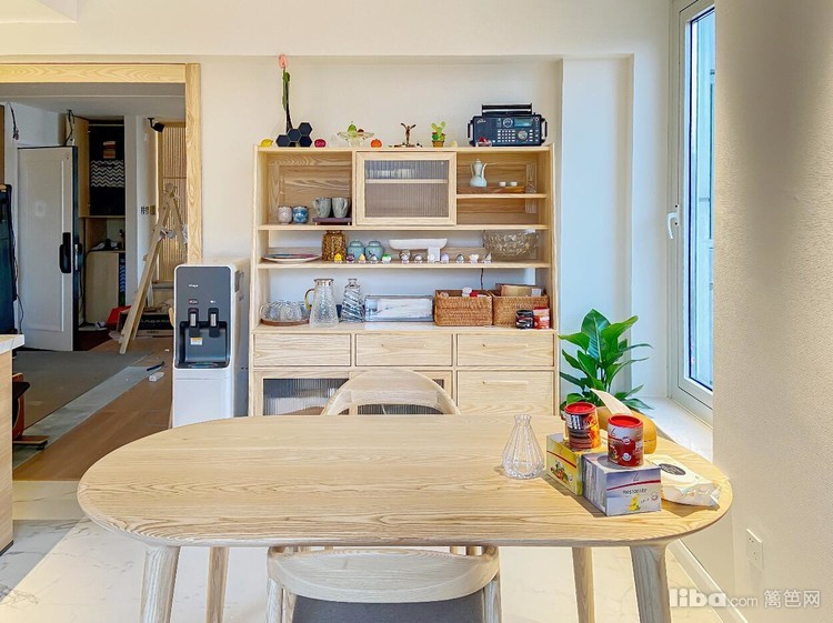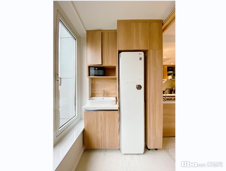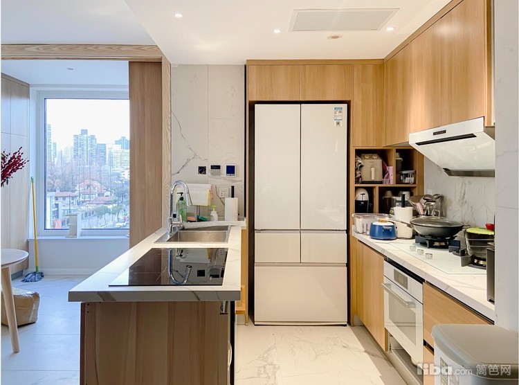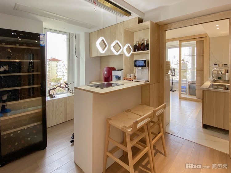 敲掉了厨房左侧的墙体,做成了半开放式,这样不仅让整个厨房的面积扩大了一些,同时改善了采光和使用体验。