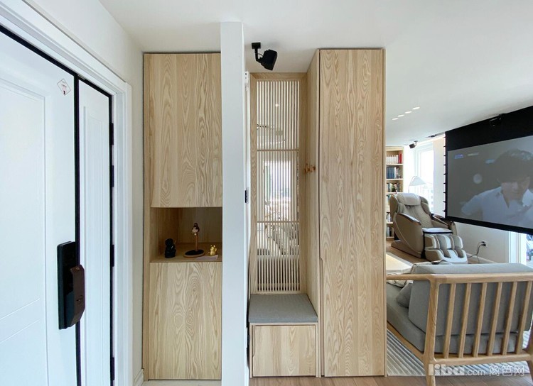 卫生间门口有一处小走廊空间,利用这里定做了柜子,用来收纳一些生活用品。