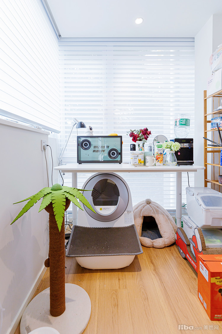 墙面和吊顶都处理的很简单,白墙+最简约的双眼皮吊顶,吊顶上方安装了6只筒灯补充照明。