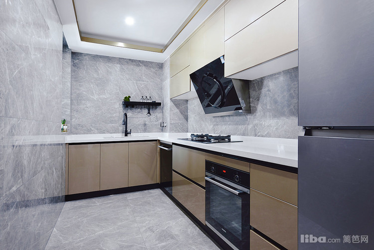 厨房是L型厨房,一边长一边短,长短比例合适,可以合理分配厨房的功能区域。洗菜、切菜、炒菜,摆放分区明确,使用方便。