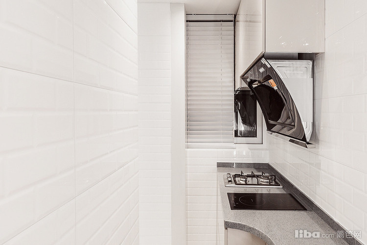 燃气热水器区域做了吊柜遮盖水管燃气,看起来美观。其他地方没有做吊柜,空间不压抑