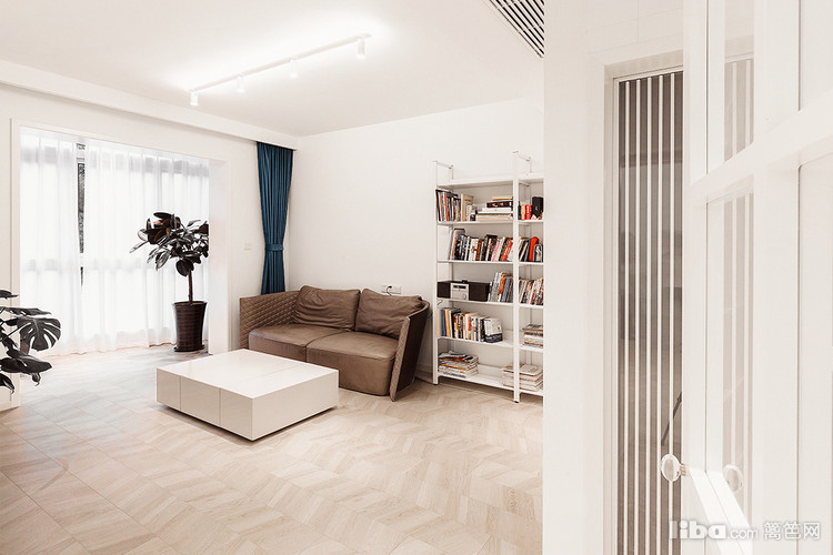 全屋灰木色地板通铺,搭配大量白色使整个空间明亮通透。