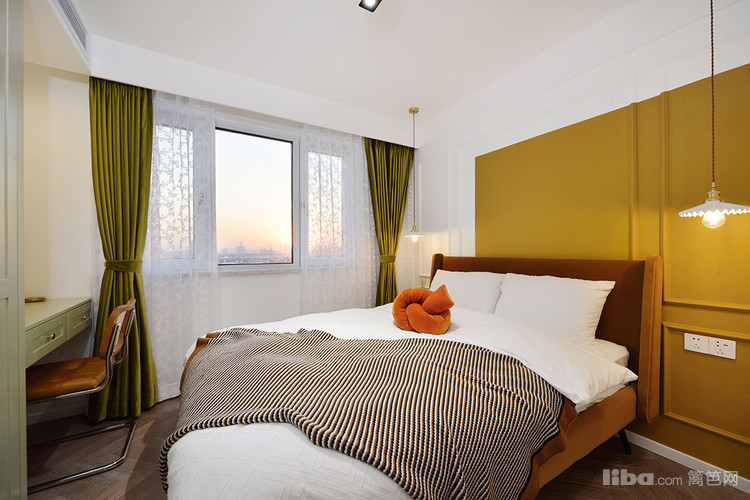 超喜欢次卧的设计,健康有活力的绿色。清新自然,缓解烦躁的心情。白色和橄榄绿对撞,让卧室变得鲜艳起来。