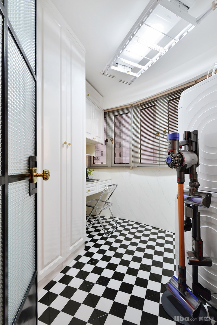 顶部安装了全自动的晾衣架,晾晒衣服很方便。还购置了洗烘一体机,贯彻不浪费每一处空间。