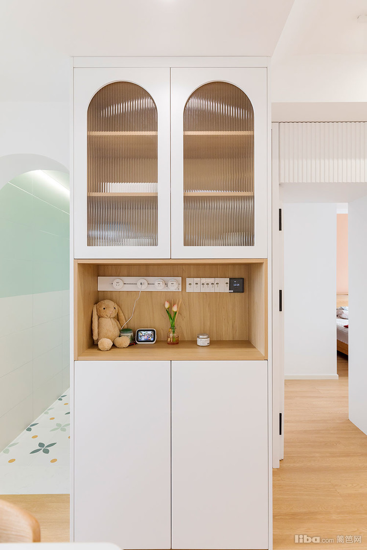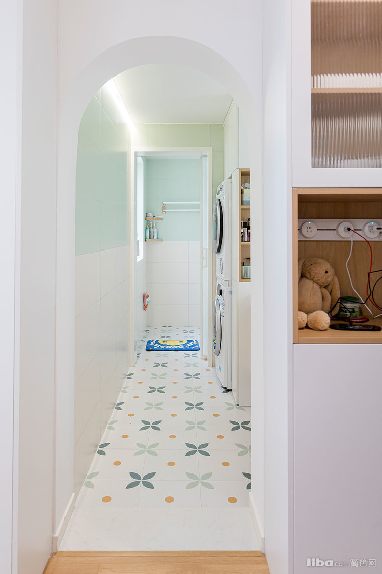 餐边柜旁边就是拱形门,卫生间做了干湿分离。