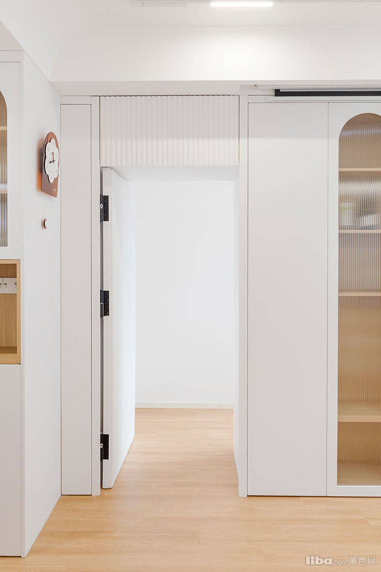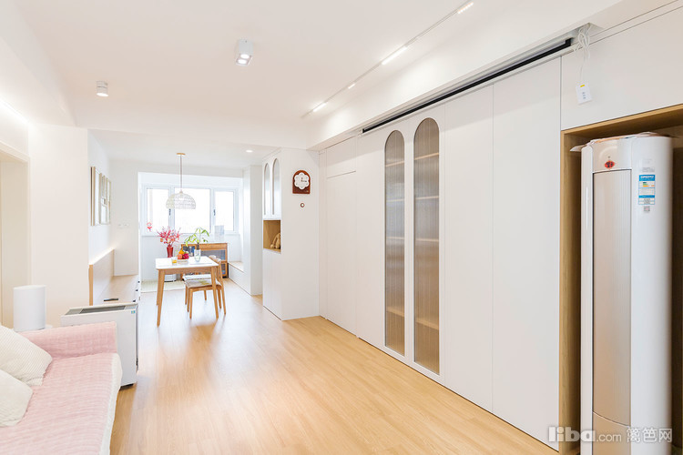 哑光白+原木搭配清新淡雅,白色也显得空间大。