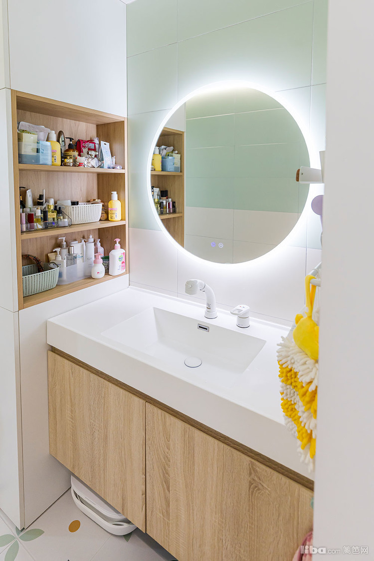侧面做壁龛收纳,开放格收纳瓶瓶罐罐 两个面都有不小的收纳空间