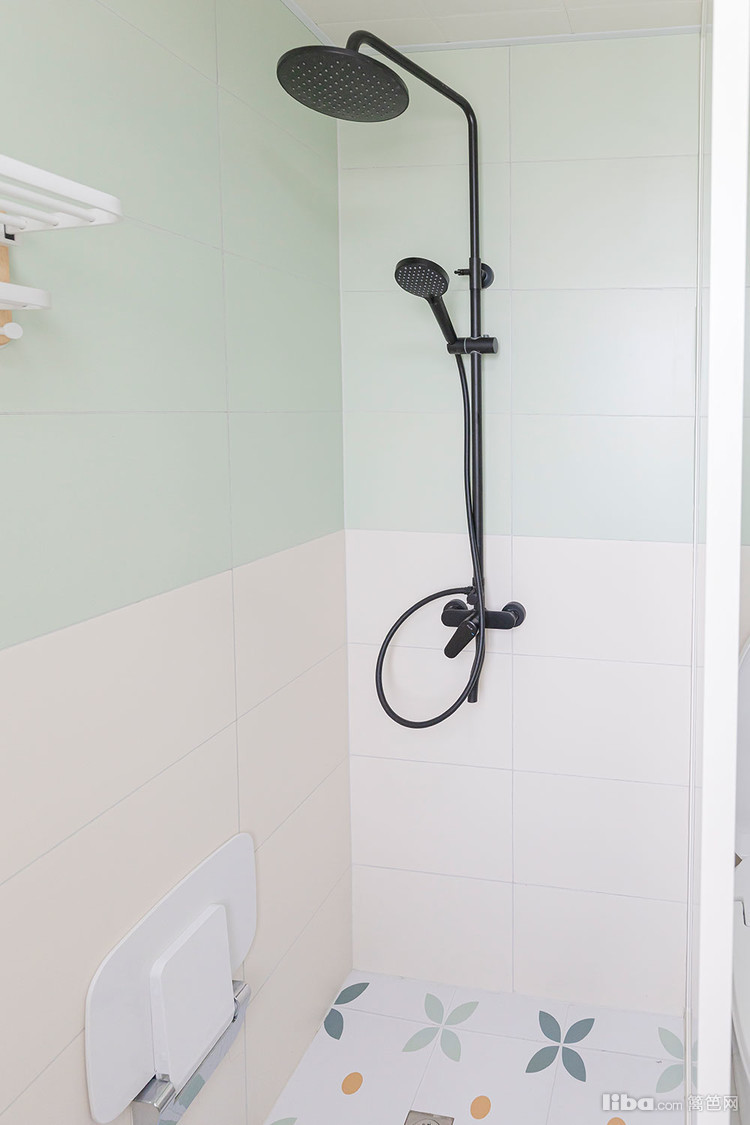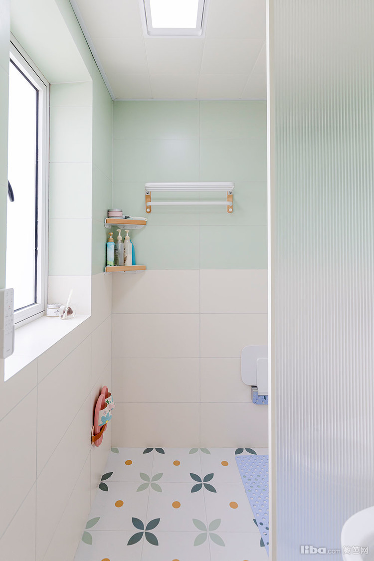 墙砖用绿+白的经典搭配 再加上地面的小花砖