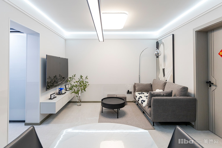 黑白灰装修真的很耐看,中灰色的双人沙发搭配浅灰色的烤漆门,实木复合材质,简约又不失单调。
