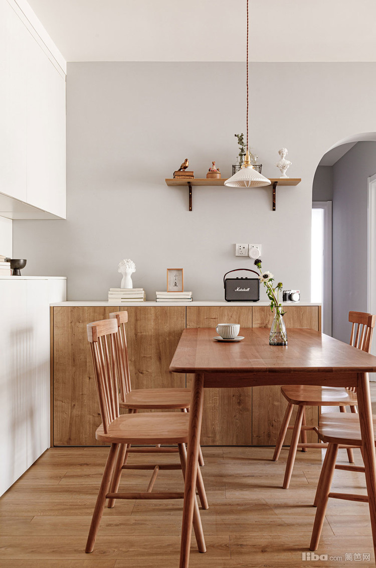 客餐厅设计了原木风,整体空间感温馨明亮。