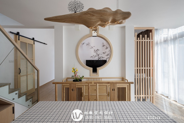 电视背景墙水墨竹壁布设计是Caly比较喜欢的地方