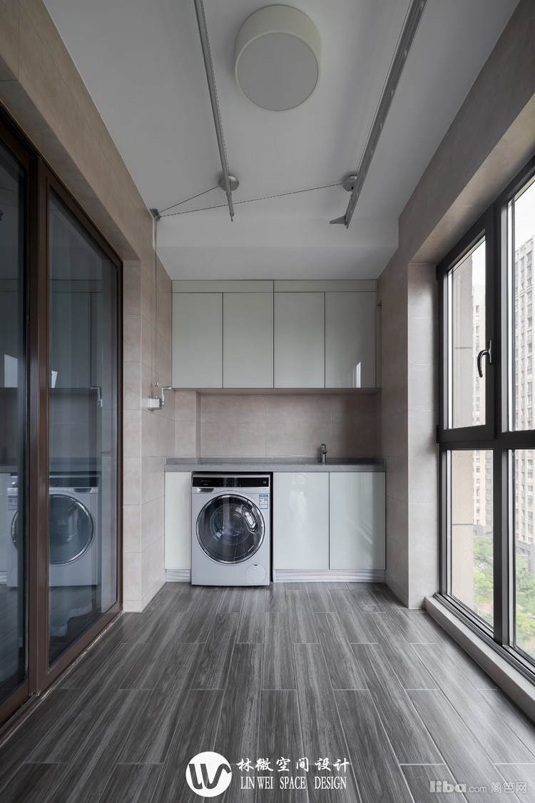 生活阳台宽阔利落,设计以实用性优先。封闭式更干净也易于打理