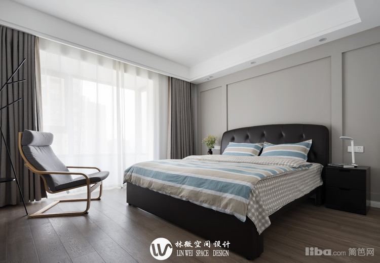 灰色系的卧室有着让人快速平静下来的力量。无主灯设计让空间没有压力,十分放松