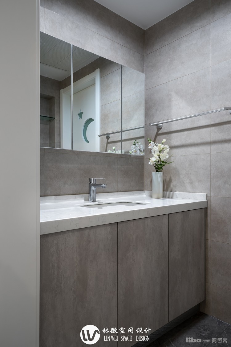 洗手台与柜子隔开,轻盈感十足;镜子做了精致的白色外包边,搭配圆润的边角,清新又时尚,让人眼前一亮。