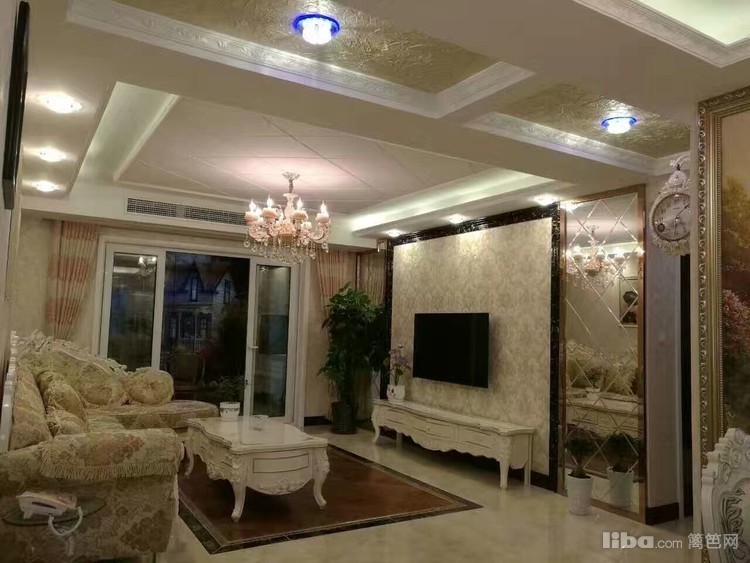 象牙白 拼砖 壁画 壁镜 挂钟 满满的欧式元素