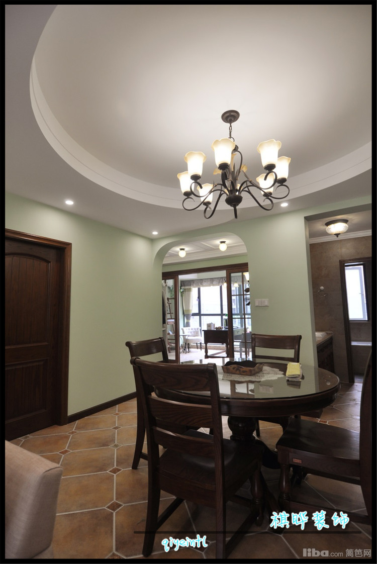 本案里利用美式乡村风格,混入田园风格元素,整体感觉稳重大气,清新。