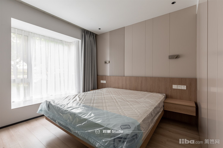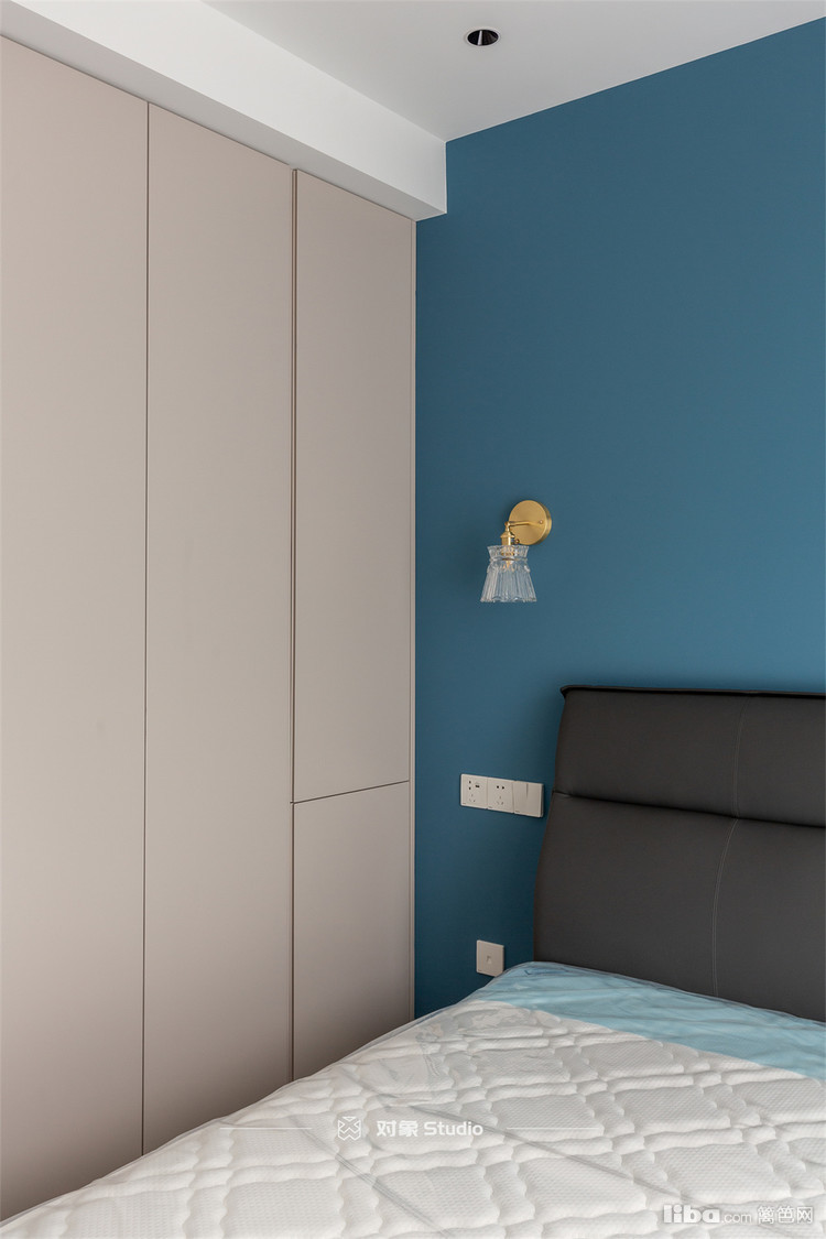 父母房就比较简洁,更注重收纳,所以抛弃传统床头柜后,衣柜到底方便开门收纳。床也是选了舒适的皮质床。