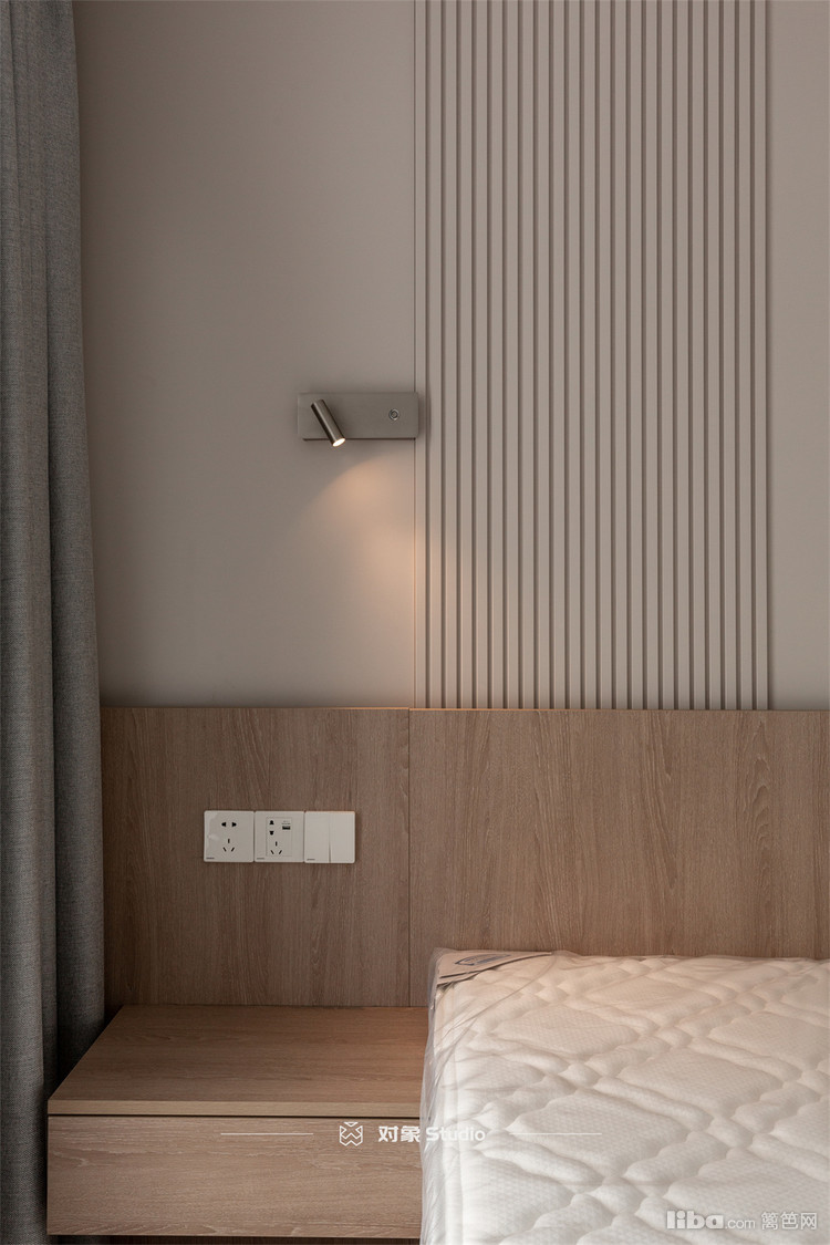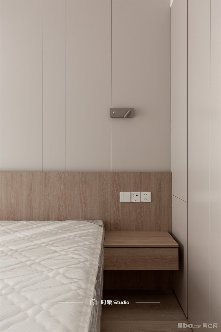 悬浮式的床头柜与床架相匹配,后期在打扫时,机器人可以随意进入,非常方便。