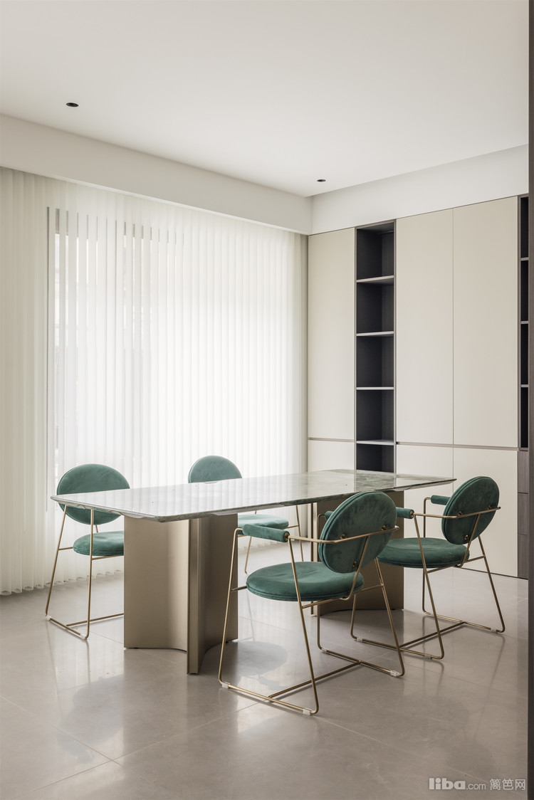 绿色花岗岩餐桌椅,与深绿色椅子相互呼应,宛如自然与家居的完美融合。