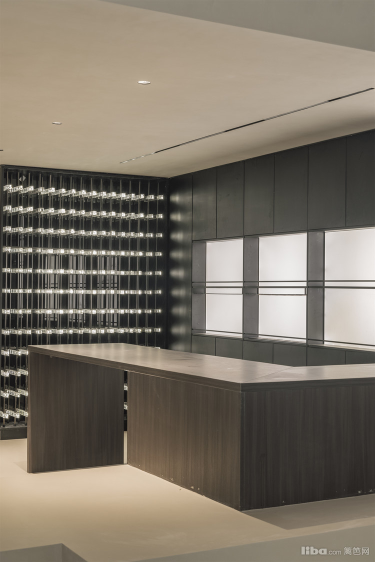 吧台设计简约而不失格调,浅灰色的柜台顶部与深色背景形成鲜明对比,更显高级质感。