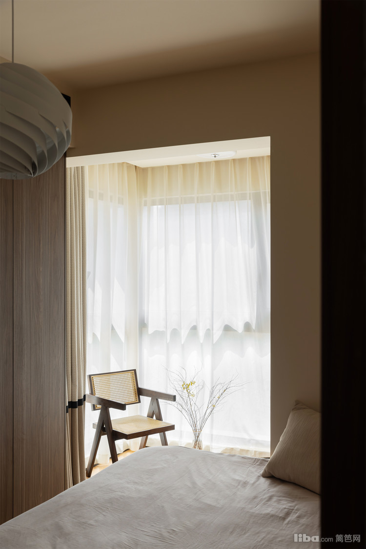 卧室窗景一角,梦幻窗帘轻舞,为空间披上柔光滤镜。