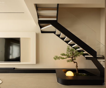 微水泥的地台让空间变得很温柔舒适。地台的设计不仅增加了餐厅的趣味性也让餐厅和楼梯过渡的非常自然流畅。