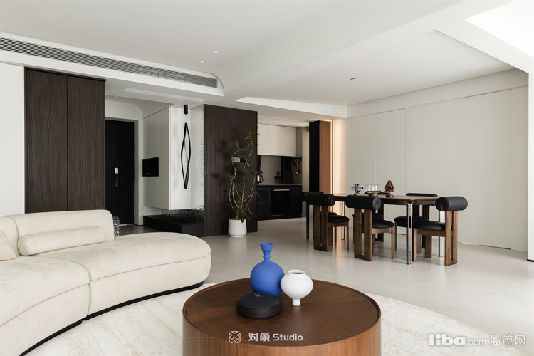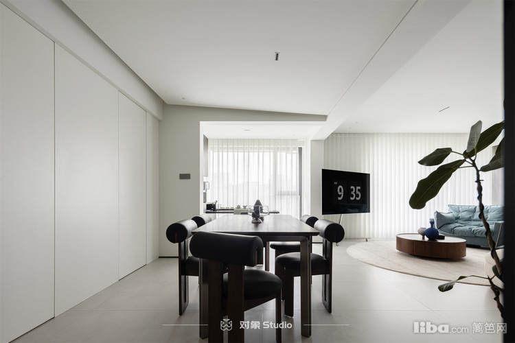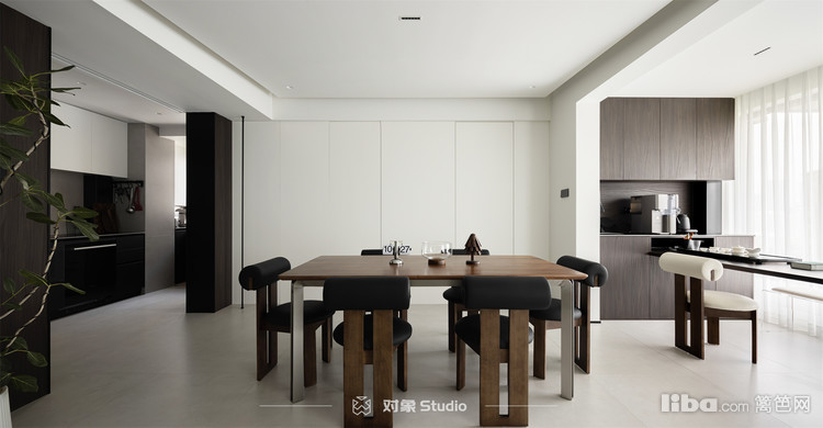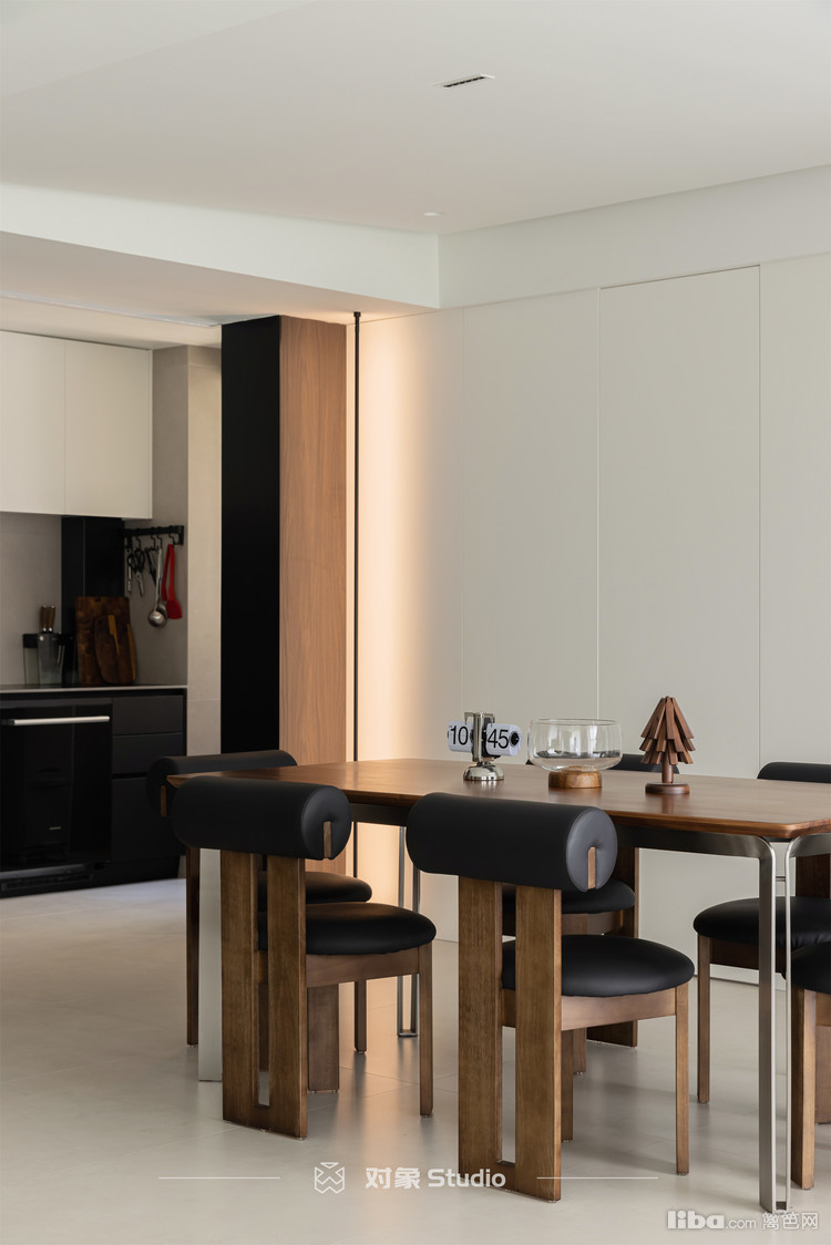 餐厅背后巧妙地隐藏着次卧套房的隐形门设计,极大地增强了空间的整体性与流畅感。