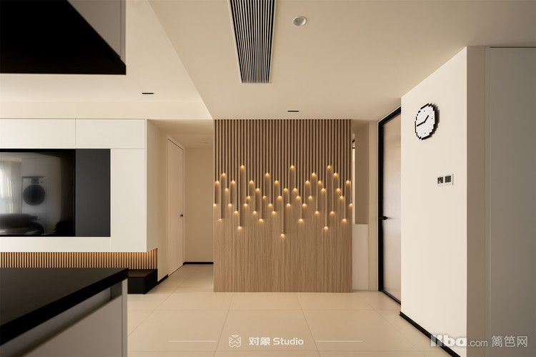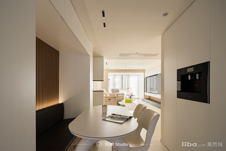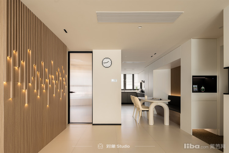 以极简主义为魂,格栅与灯带巧妙点缀,提升空间格调。设计上大胆打破常规,客厅厨房一体化,拓宽了厨房。