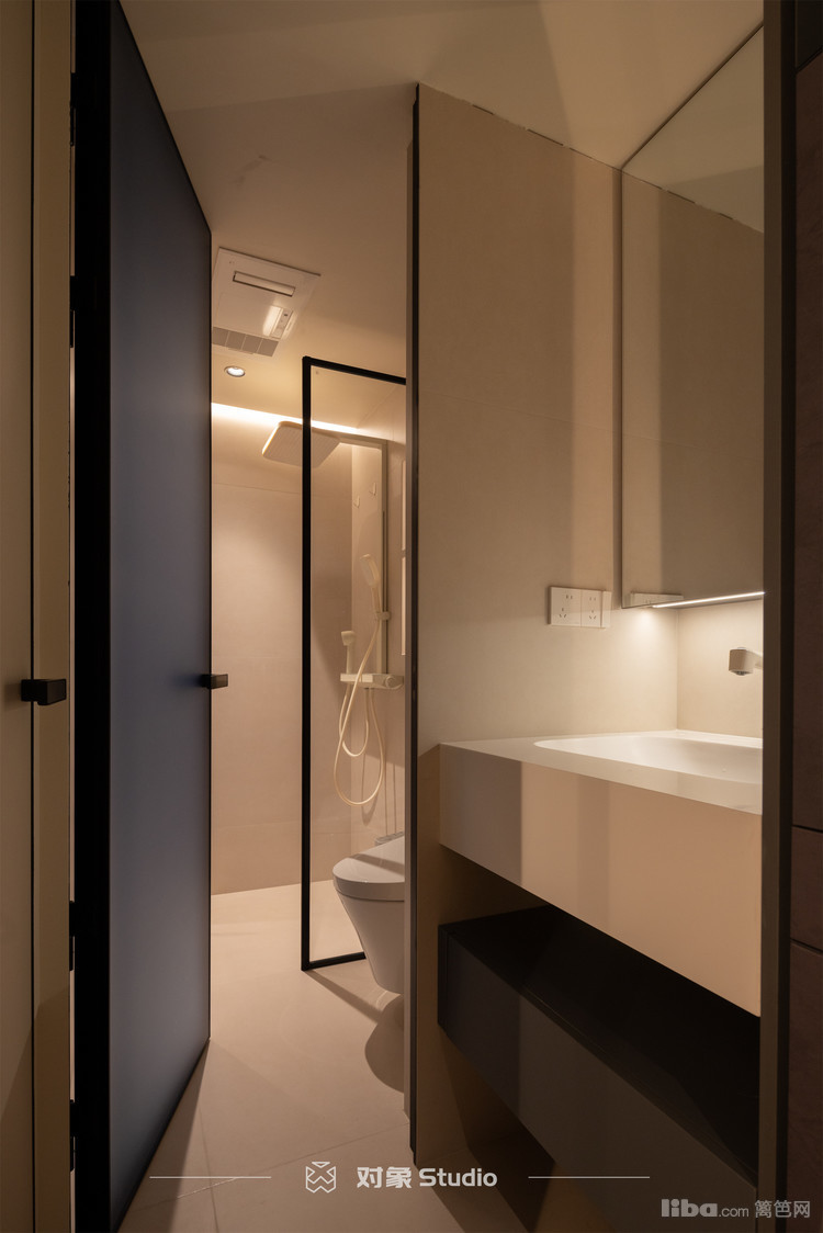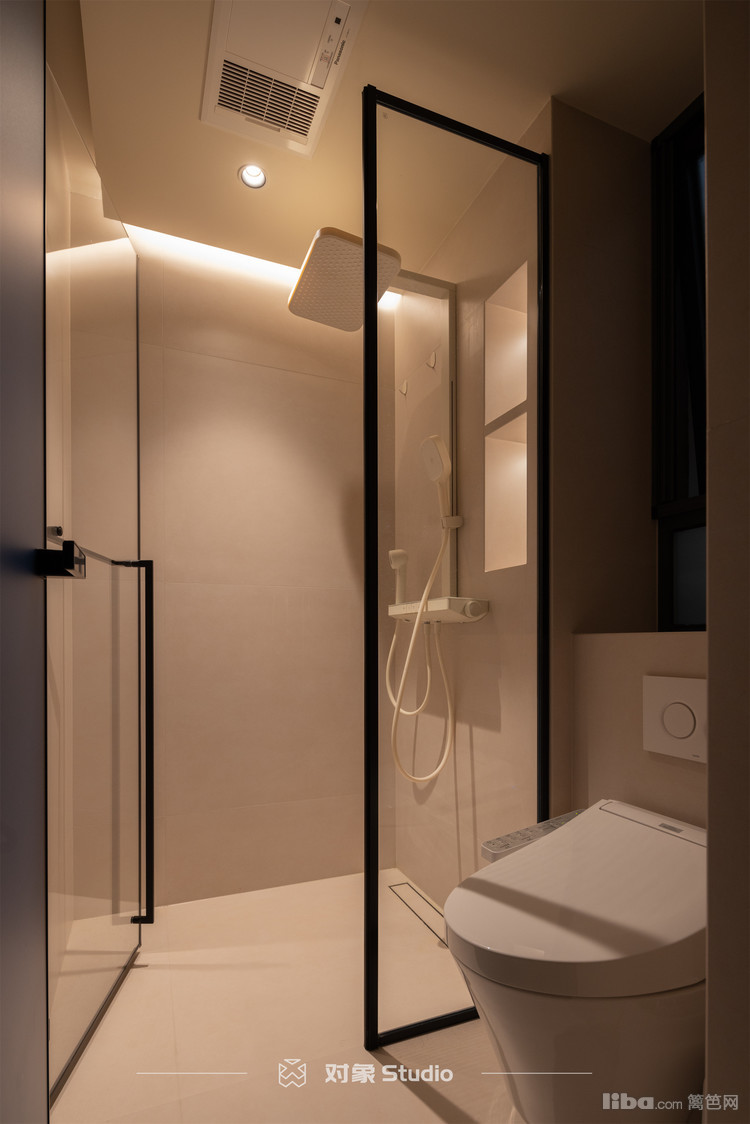 卫生间内部运用了壁龛,无主灯, 长条形地漏等元素