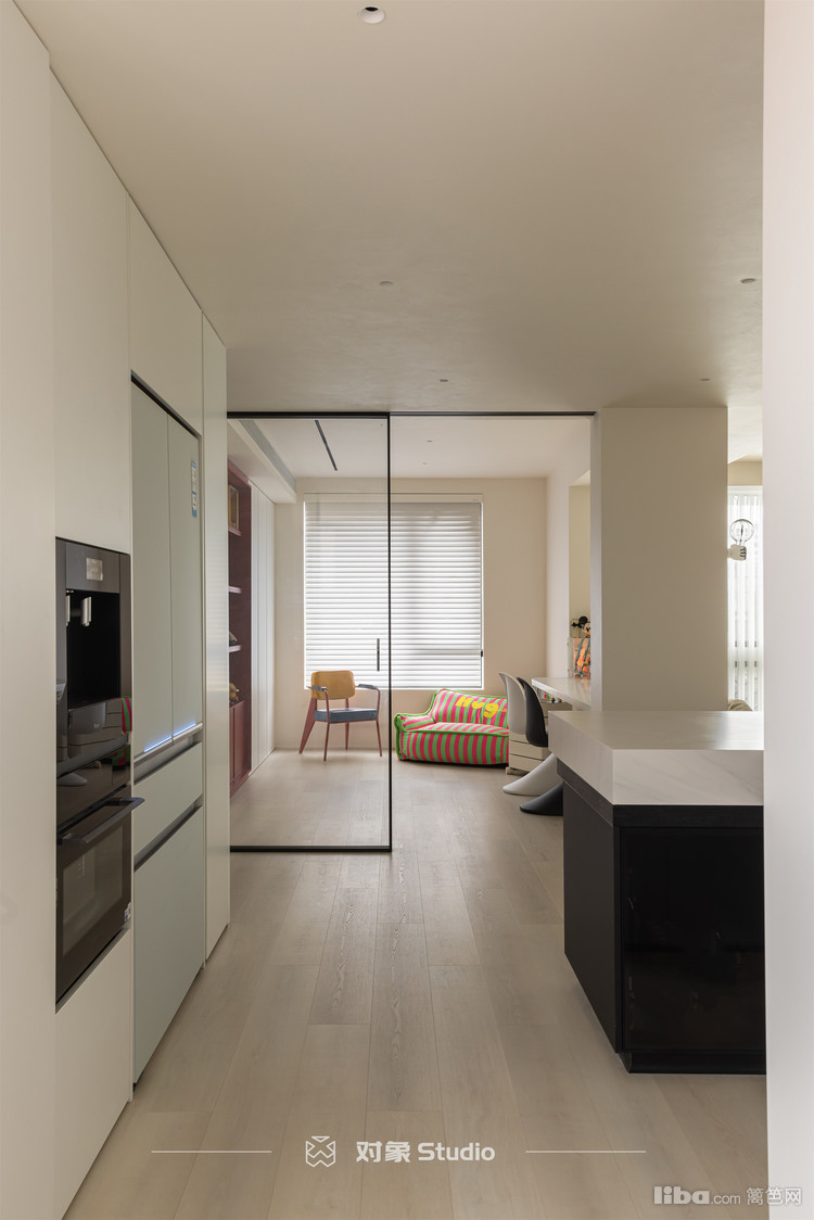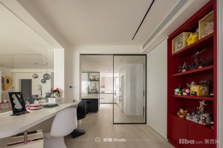 工作区选用了移门,做了极简边框,上轨道处理,打扫卫生起来方便。