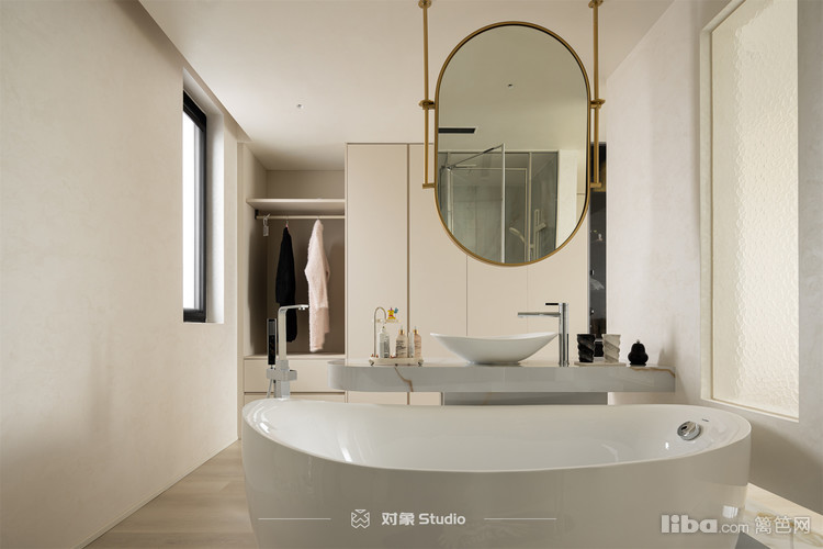 整个空间围绕着台盆和浴缸区,形成了洄游动线。