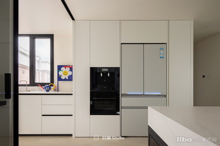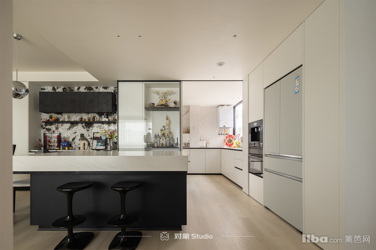 设计师把原本北阳台及原储藏室纳入厨房空间,增加厨房利用率。整个厨房地柜收纳非常的够,所以没有做任何的吊柜,让空间看上去更大。