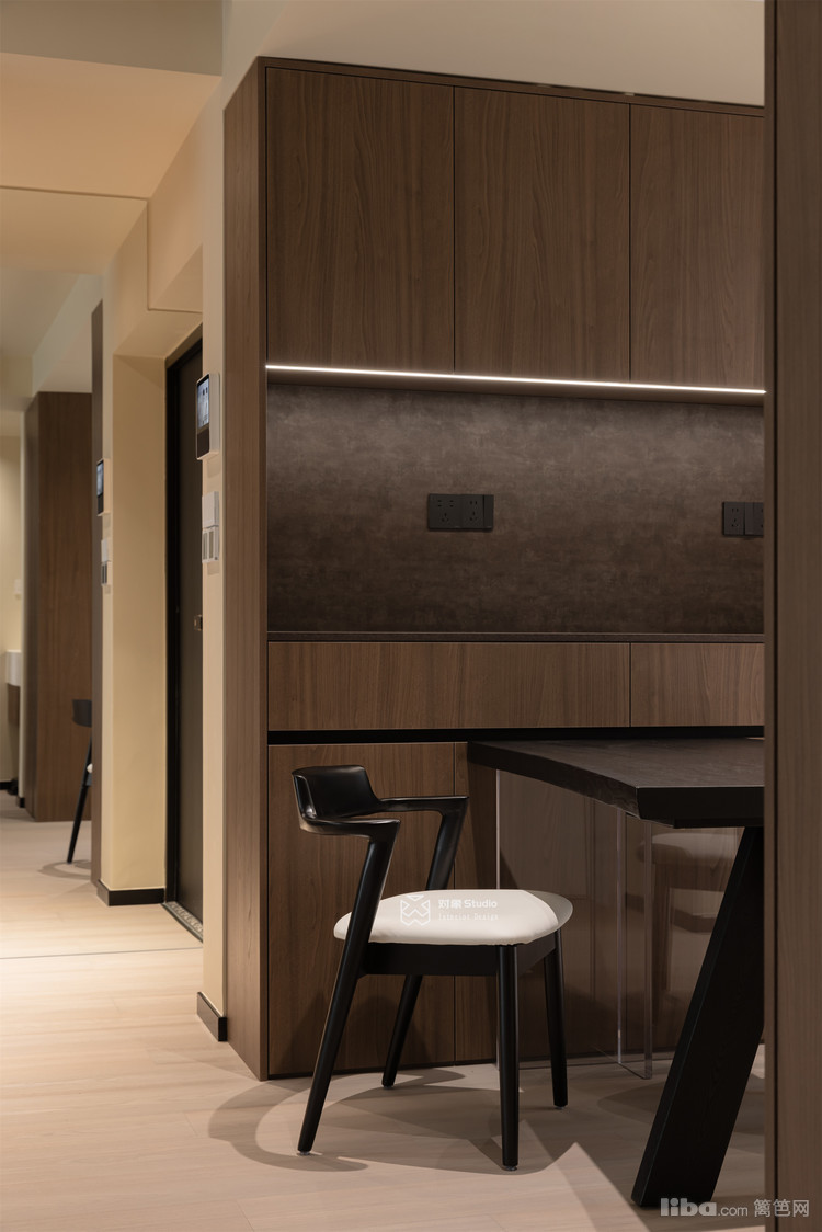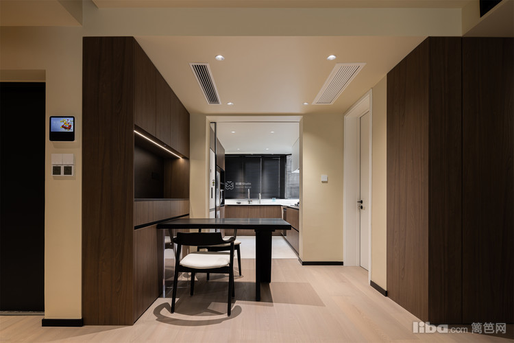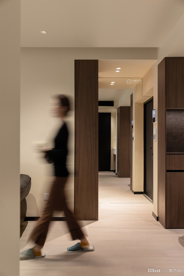 实木质感金属门的选用,在材质上构建了温暖的视觉过渡。