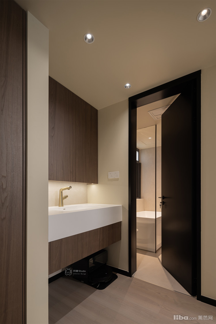 实木质感金属门的选用,在材质上构建了温暖的视觉过渡,其精确的闭合角度与门框收口处理,既化解了传统风水顾虑,又以现代设计语言重构了隐私保护的物理边界。