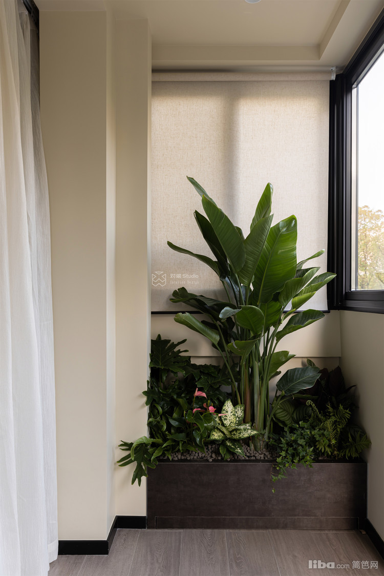阳台刻意剥离了洗衣机的机械存在,让空间回归最原始的纯粹——一个盛放光线与生命的容器。