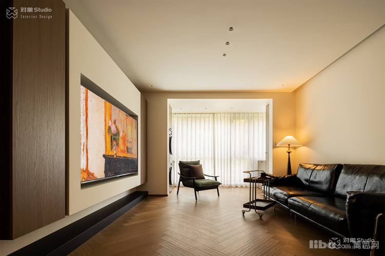 电视背景墙,摒弃整面厚重柜体,采用三段式设计(两侧储物柜 + 中部石膏板/砖饰面),避免呆板。