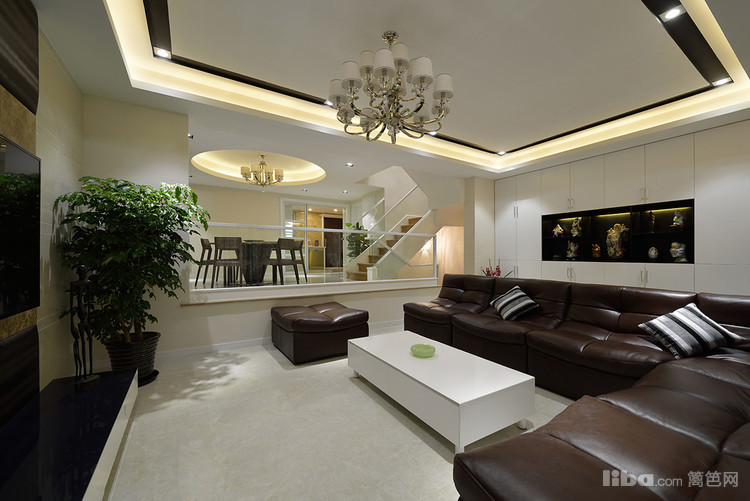 主色调定位为白色,并用家具、灯具、饰品、装饰画等软装进行搭配,使居室达到色彩和材质的完美融合