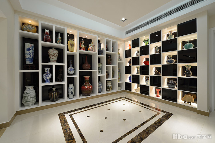 设计师还将地下室打造成现代私家博物馆,以彰显业主独特的艺术底蕴。移步来到位于地下室,各类大小、风格各异的瓶、碗、杯、盘、尊、壶、缸等器物约几十件,摆放错落有致。