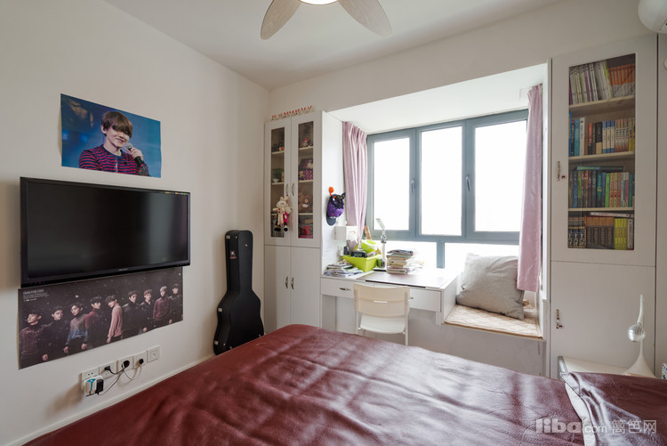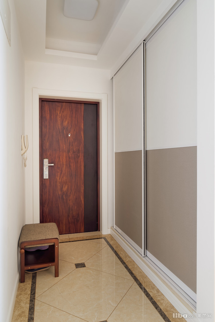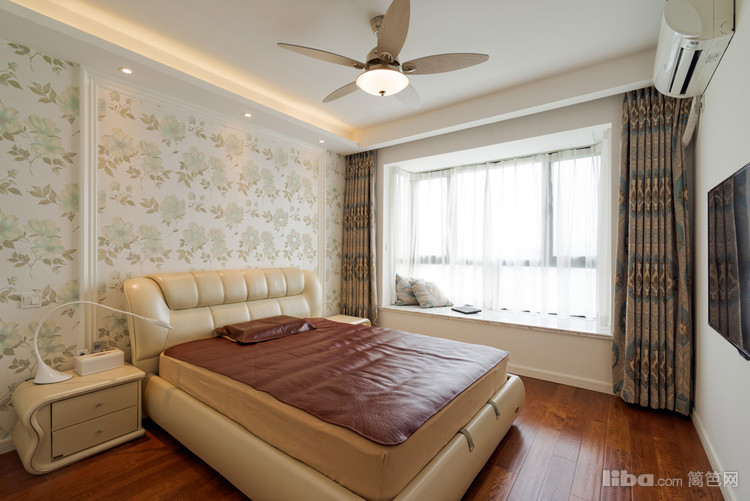 浅色的空间主色调让主卧显得落落大方。单面的墙纸主题墙给简约的卧室带来几分活泼。米色系+灰木纹的衣柜与空间和谐相融。黄色实木复合地板与白色天花板,一深一浅,色彩碰撞,不显单调。