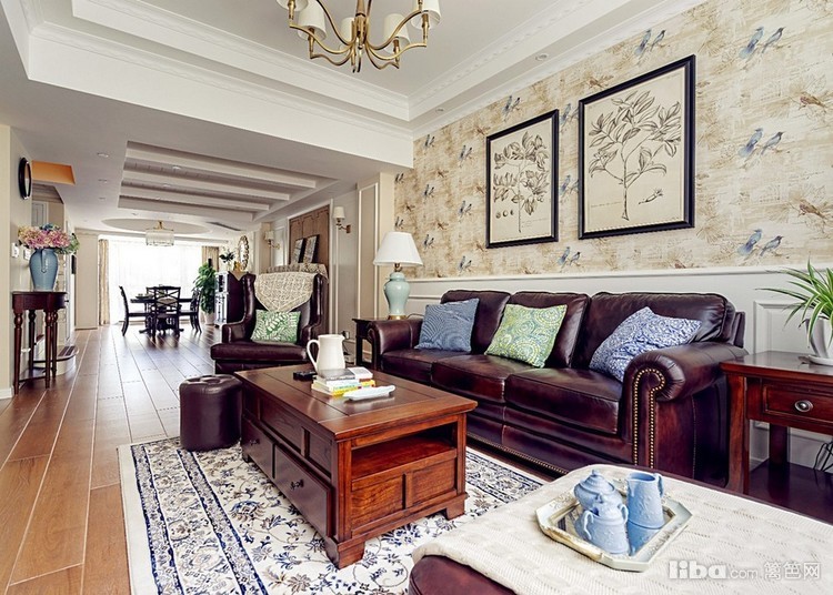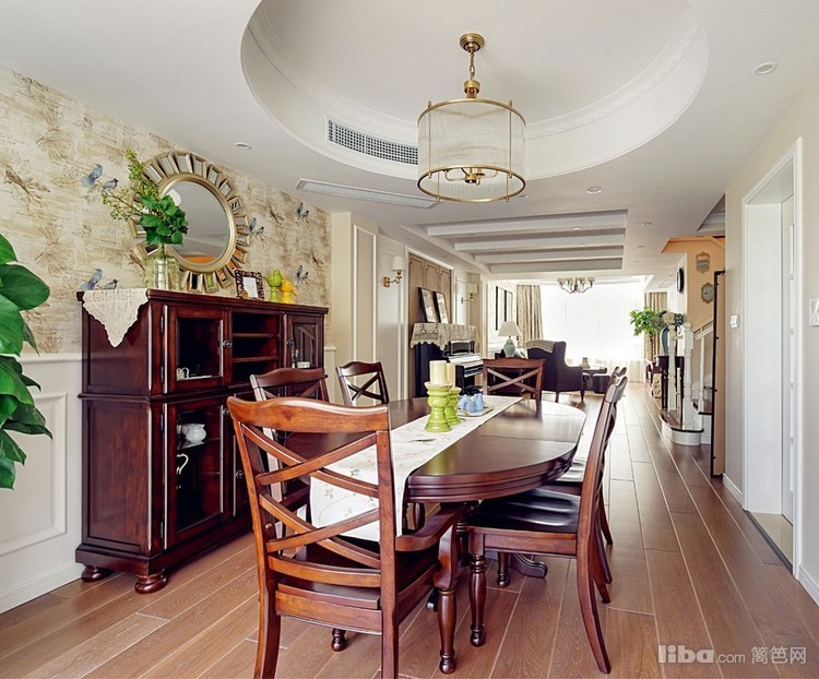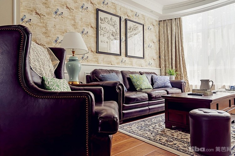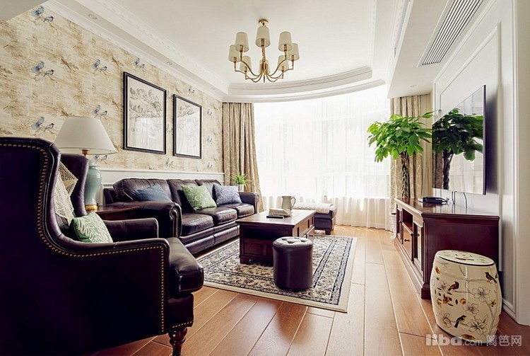 整体造型以简洁的基础线条配搭美式风格经典线条进行衔接,色彩方面公共空间基础色为大面积米色为主,再配搭深咖色的胡桃木家具作为衬托,达到整体风格清新又不失为重
