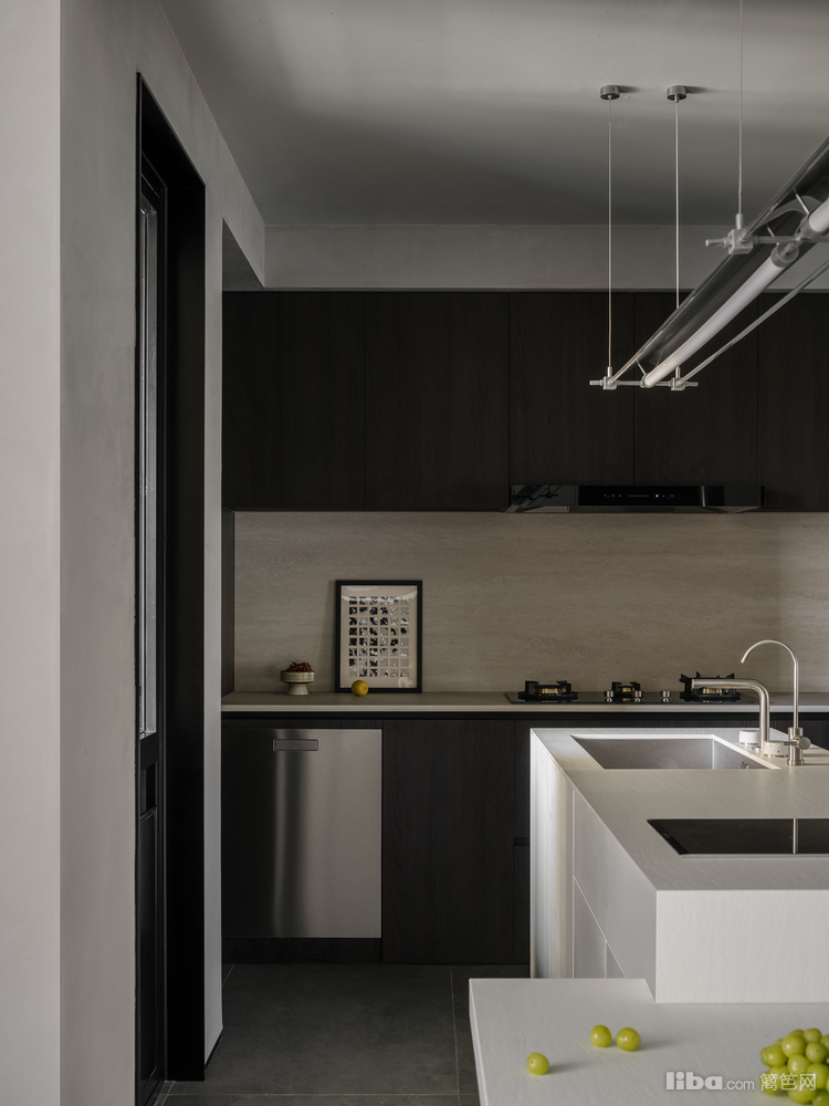 从实用性出发,彻底将餐厅厨房空间打通,做了餐厨空间一体化设计