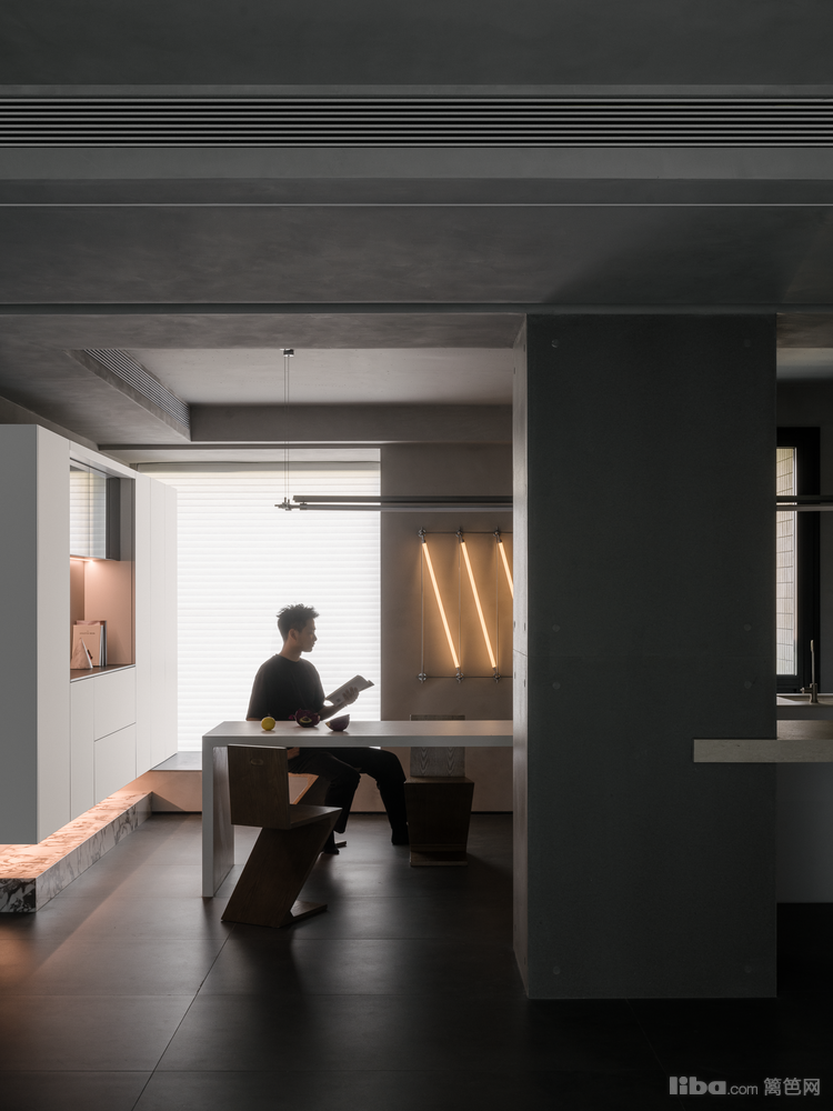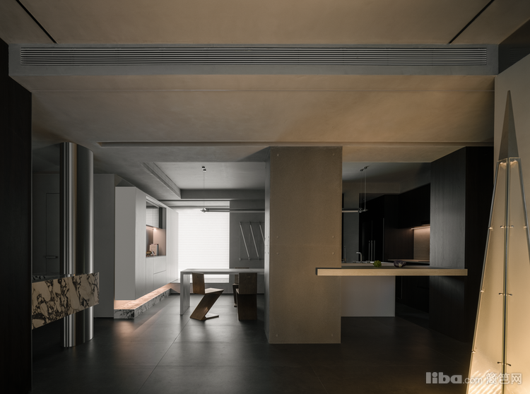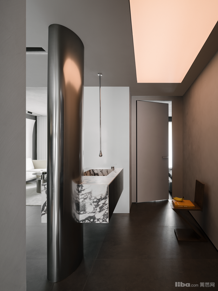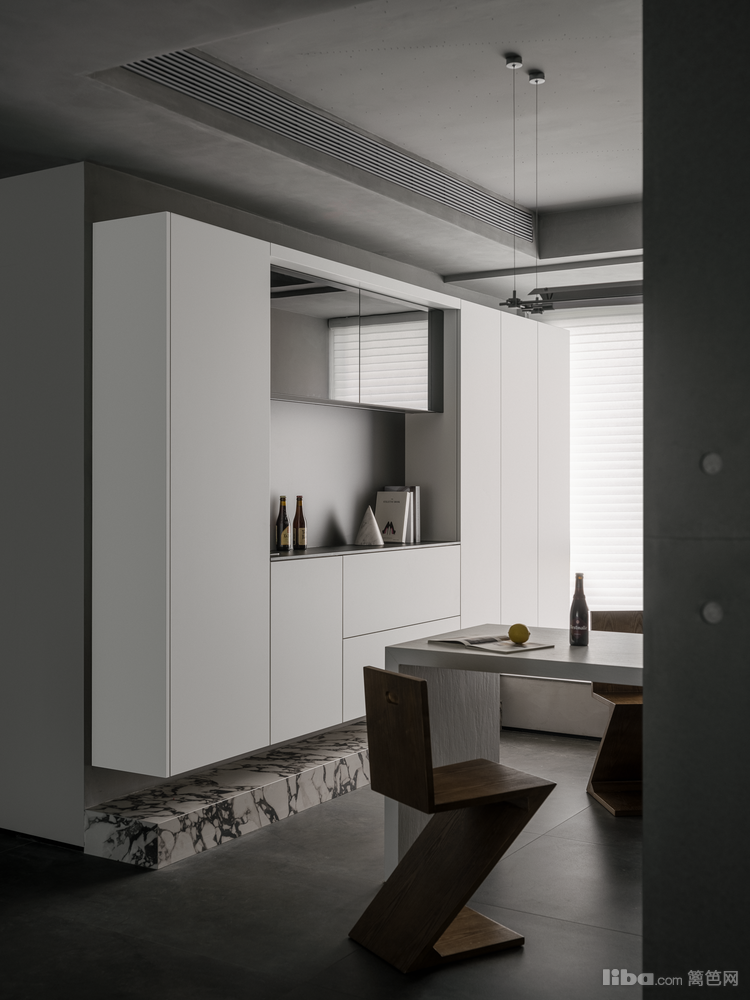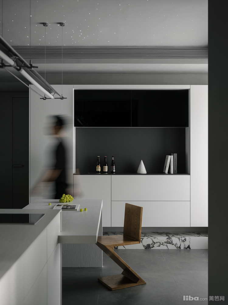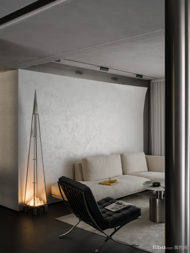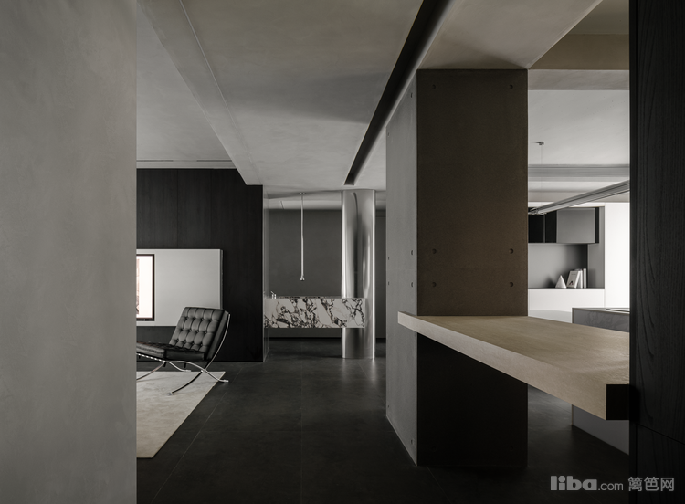 在设计上我们沿用了极简风格为主轴,在空间里做减法,强调黑白之间的极致碰撞,从视觉上拉伸空间感
