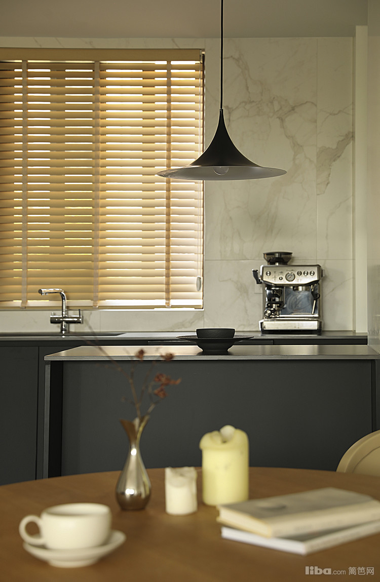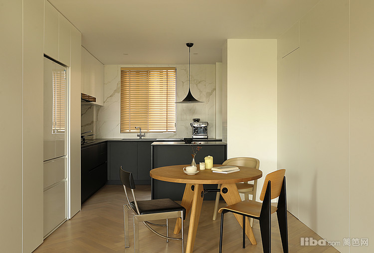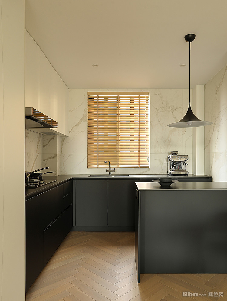 台面与橱柜采用了沉稳高级的黑色来消解空间的素雅,保持空间简洁的同时,避免了极简设计带来的视觉疲劳