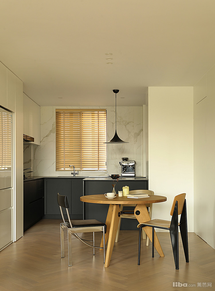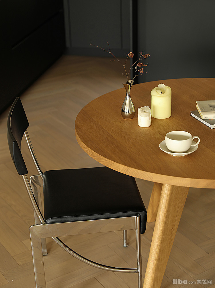 极简设计的实木餐桌搭配造型迥异的餐桌椅,提升空间质感的同时让用餐更具仪式感