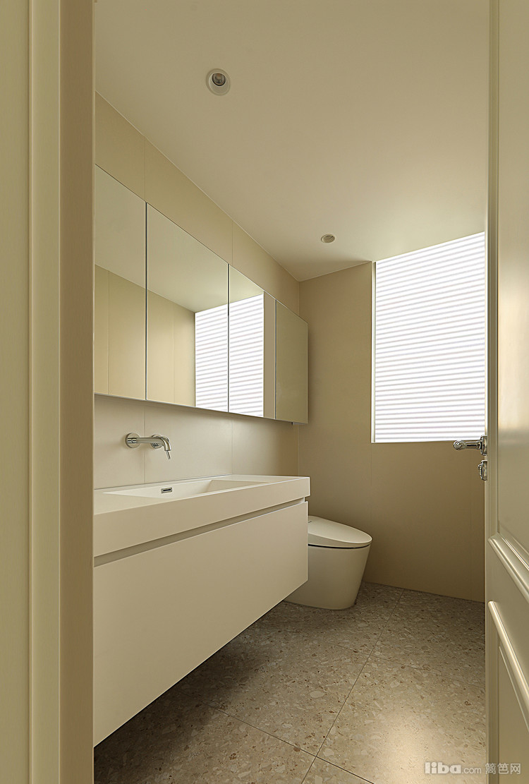 卫生间采用了干湿分离的设计,四周通涂奶油色乳胶漆,整个空间呈现出极简干净的感觉
