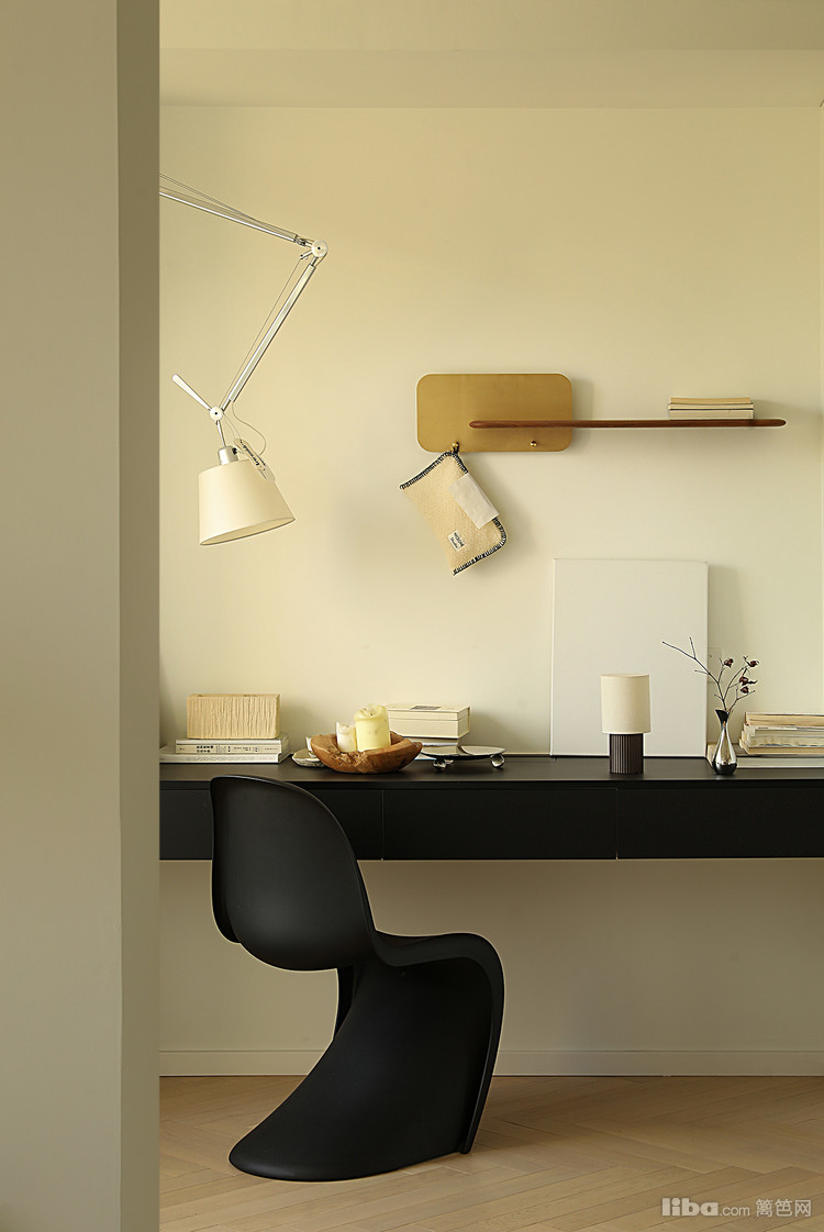 黑色悬空书桌与墙面形成深浅对比,让这个简约的空间层次更加丰富