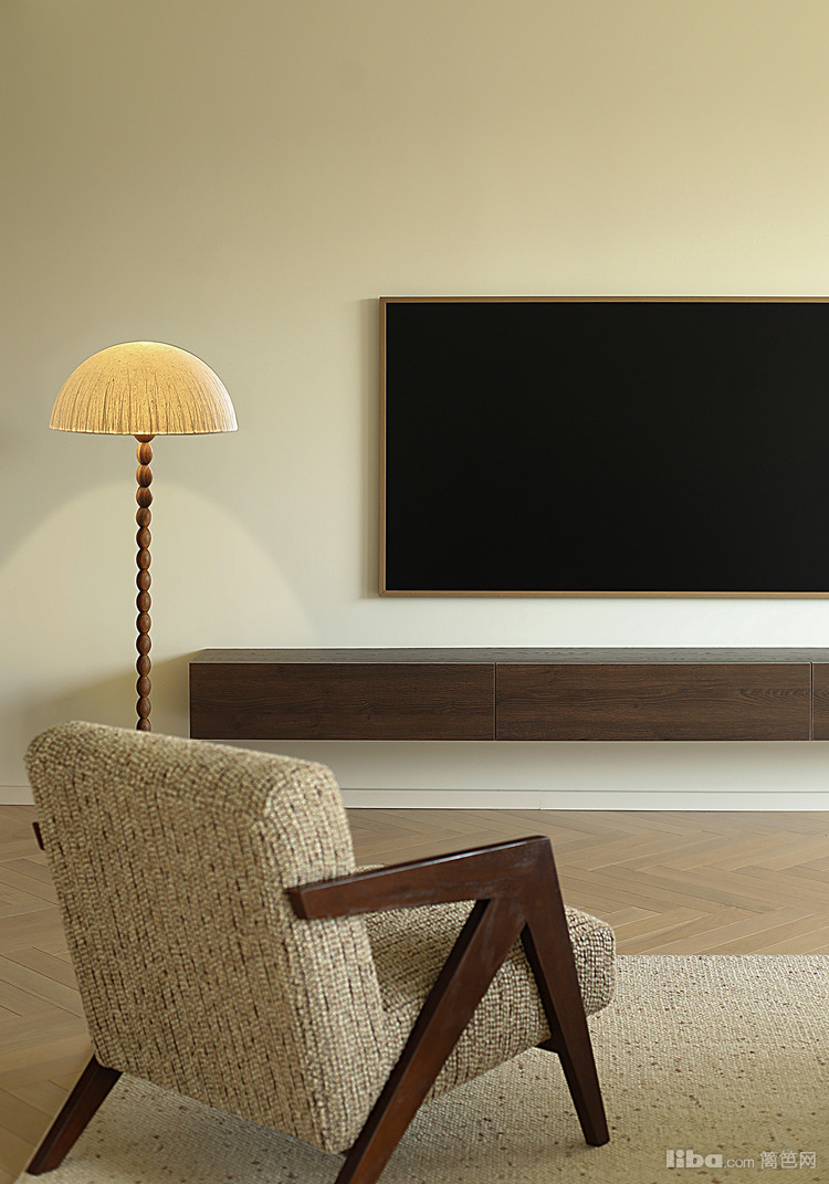 客厅整体简洁干净。现代与中古的巧妙融合,简洁硬朗的线条、精致柔美的家居、自然的光感、浓郁的配色,自由与迷人的悠然氛围