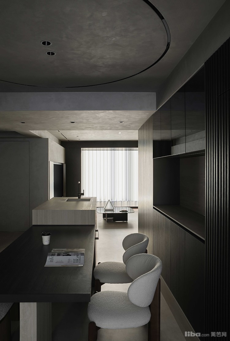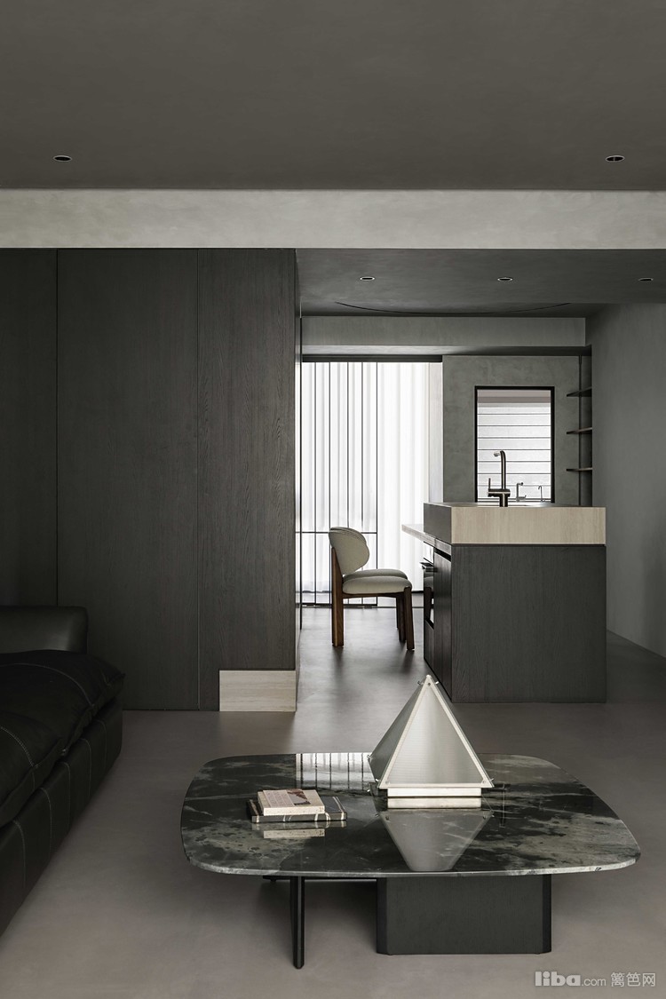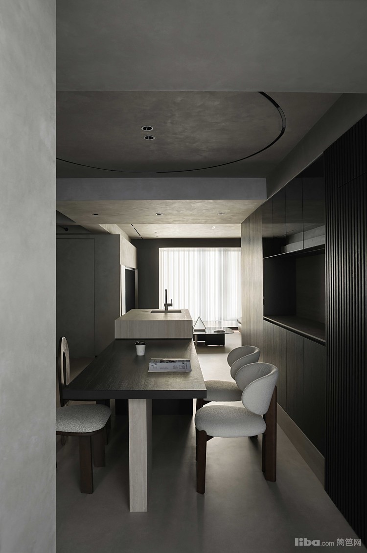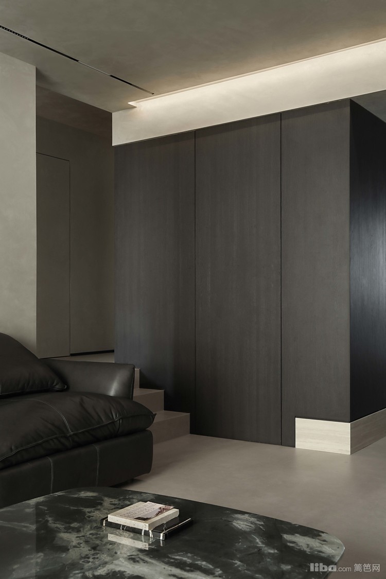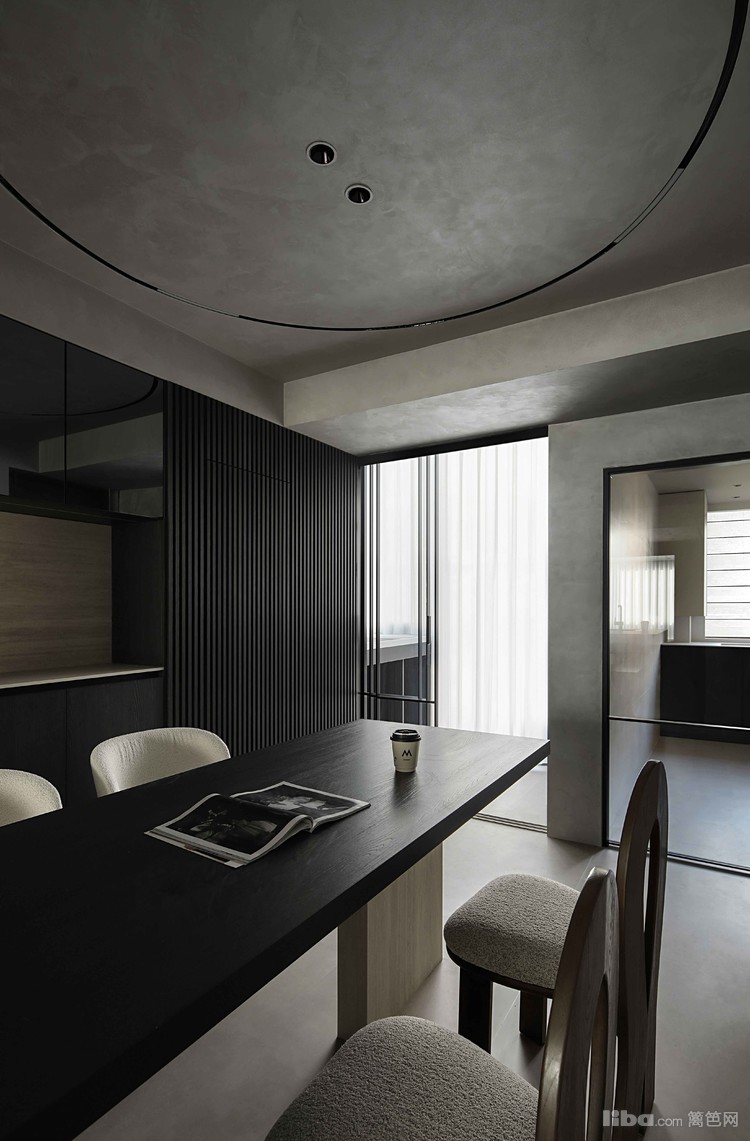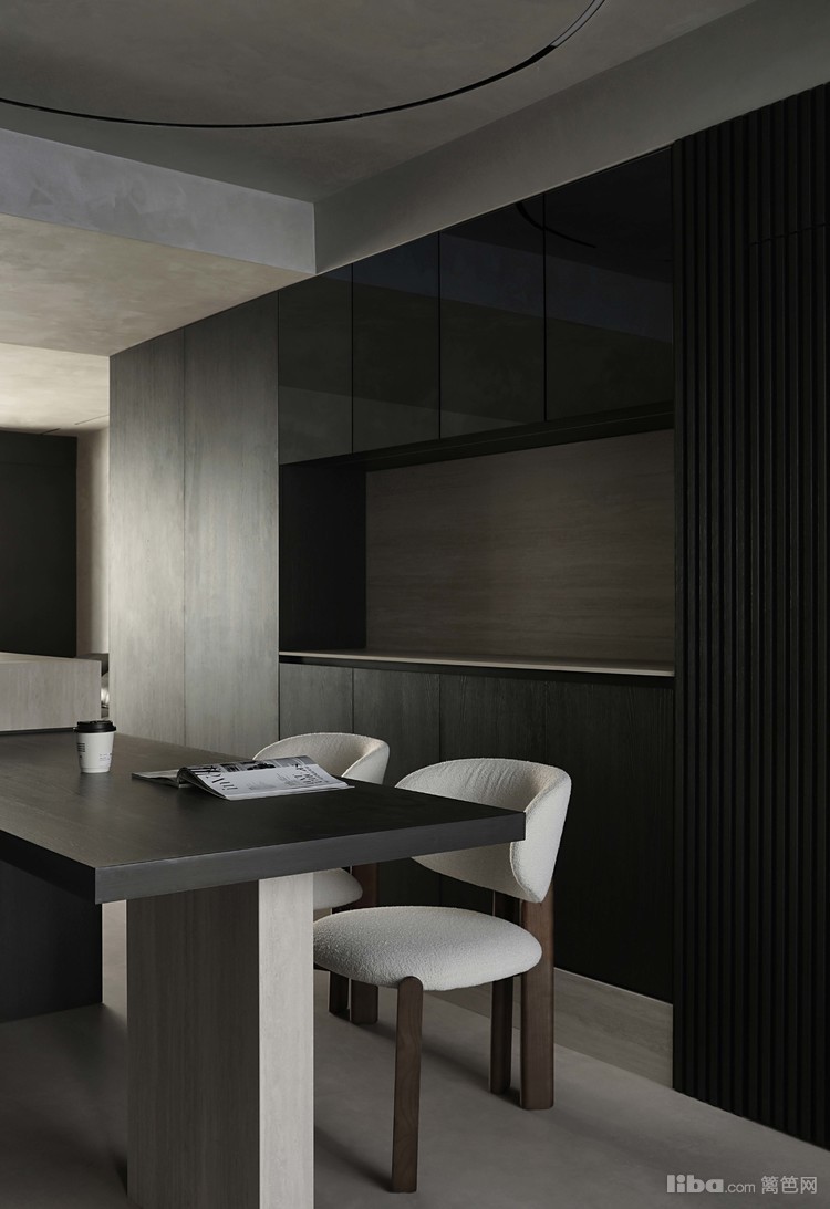 设计师以极简为基调,巧妙运用微水泥、黑色与木质元素相互搭配,融入极简主义元素,打造不一样的极简侘寂风